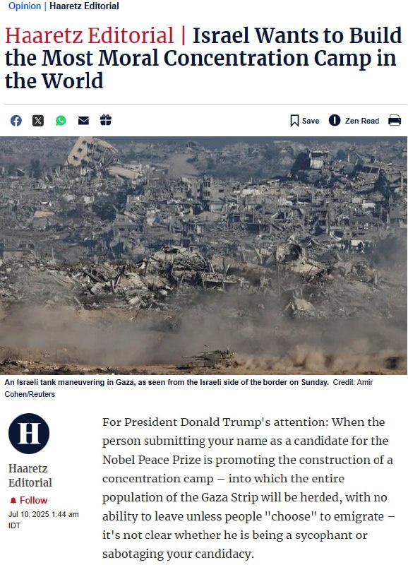 An opinion piece from Israel's longest-running newspaper on the 'humanitarian city' plan