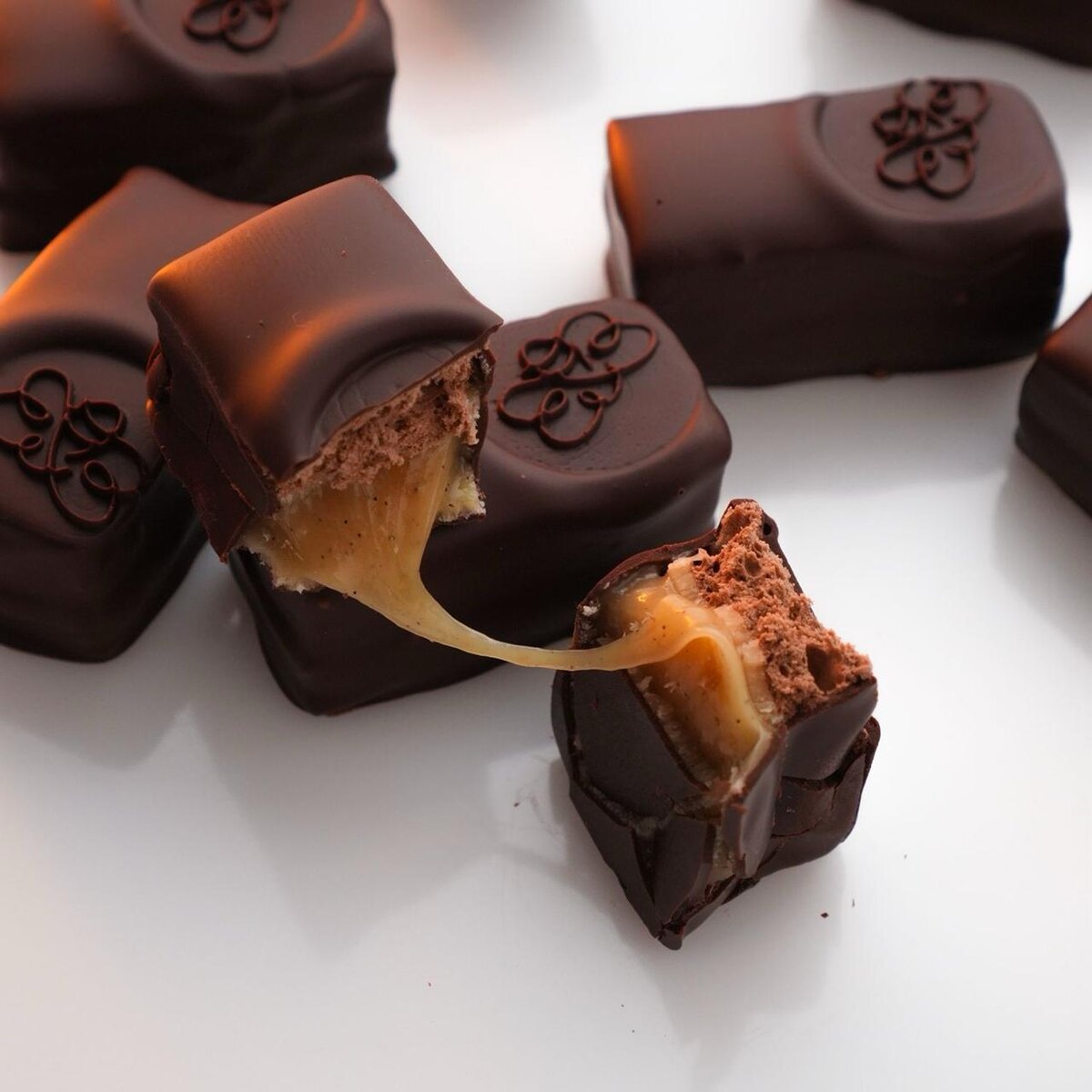 Карамель — не воздушная, но важная часть батончика. Сделали её пластичной и ароматной, без горечи и лишней тяжести.