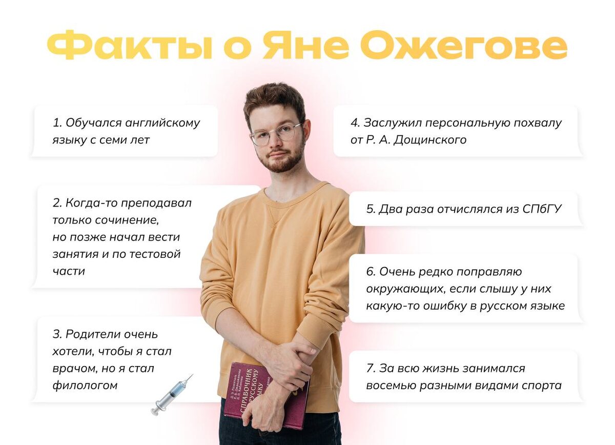 Как хорошо вы знаете человека, которому доверили свою подготовку к ЕГЭ по русскому языку? На этой картинке собрано 7 фактов обо мне, но один из них ложный. Как думаете, какой? 😉 Всю неделю каждый день я буду рассказывать об одном факте из этого списка, и, кажется, это идеальный способ стать ещё немного ближе!