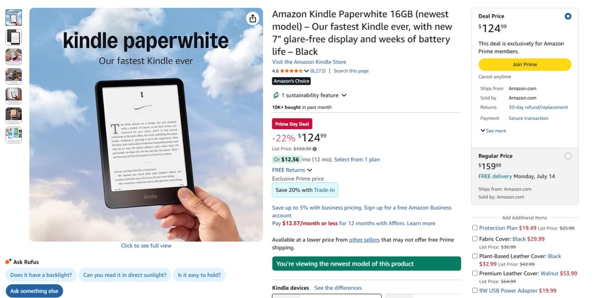 Электронная книга Amazon Kindle Paperwhite 16GB