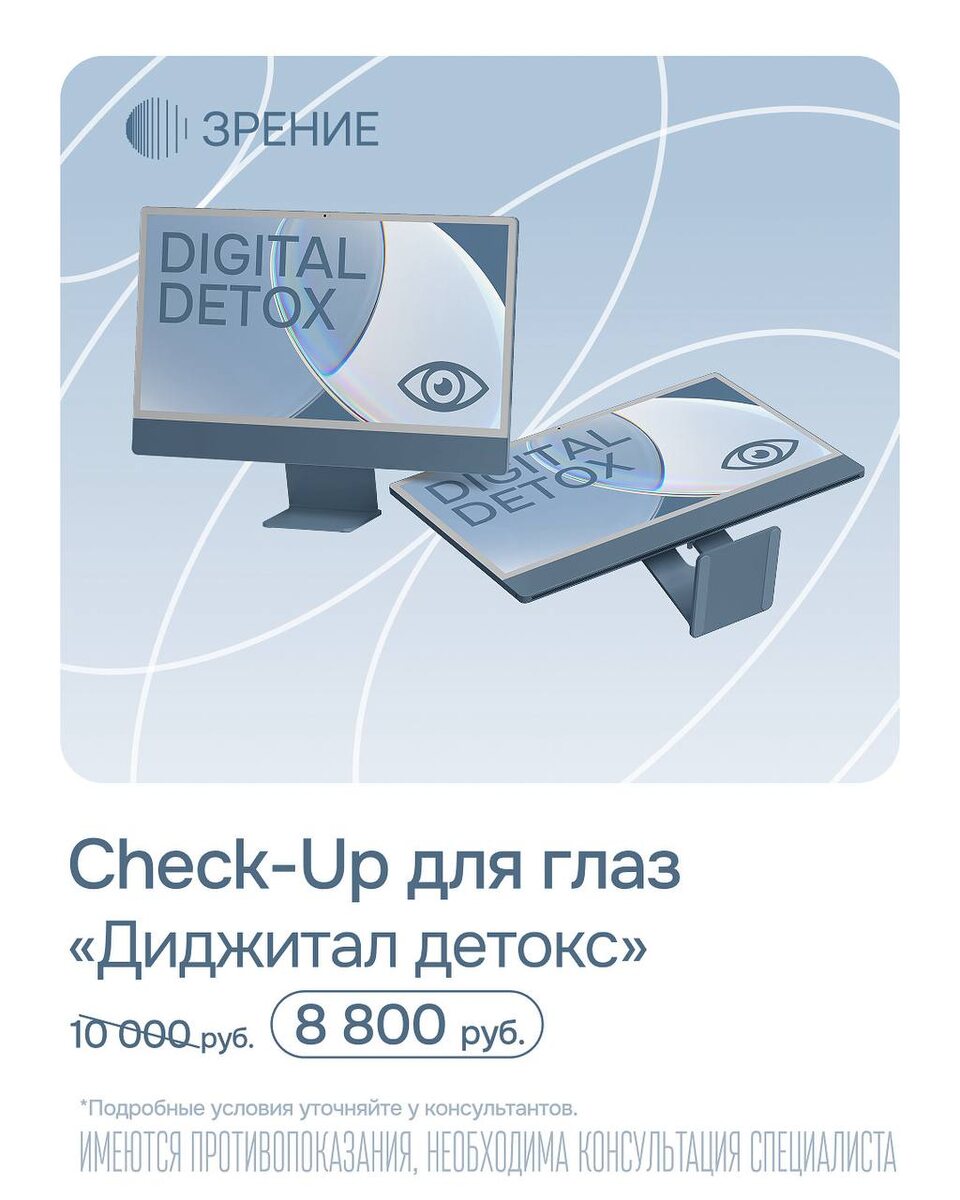 Не закрывайте глаза на своё здоровье Недавно мы рассказывали, что у нас появились детские чекапы, видели? А теперь предлагаем пройти проверку зрения всем, у кого экранное время > 5 часов в день. Ваше зрение — наша забота, поэтому за один визит вы получите полную картину состояния зрения, без лишних походов и очередей. Что входит в этот один визит: 🔔 консультация офтальмолога с полным обследованием (проверка остроты зрения, внутриглазного давления, осмотр глазного дна) 🔔 кератотопография («карта» роговицы для ранней диагностики нарушений) 🔔 диагностика синдрома «сухого глаза» (проверим, не нарушено ли увлажнение глаз, которое может вызывать жжение и со временем снижать качество зрения) 🔔 персональные рекомендации по уходу и зрительной нагрузке Вы получите объективную картину состояния глаз и конкретные рекомендации. 🤍 Приятные бонусы: — 10% скидка на покупку в нашей галерее оптики — А если решитесь на лазерную коррекцию SMILE PRO в течение 30 дней, то получите скидку в раз