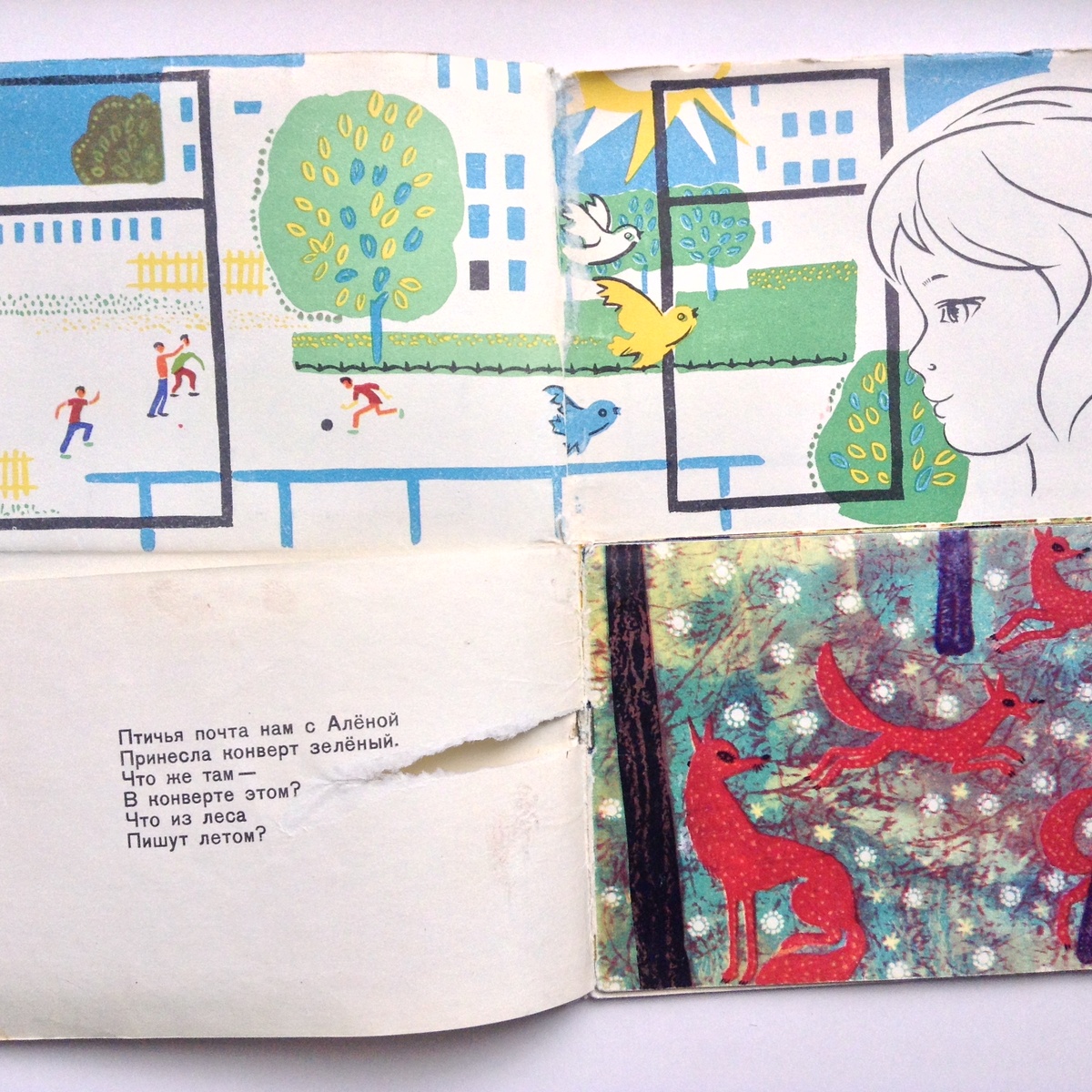 Последний конверт — летний, зеленый — из детской книжки «Четыре конверта» Генриха Сапгира.