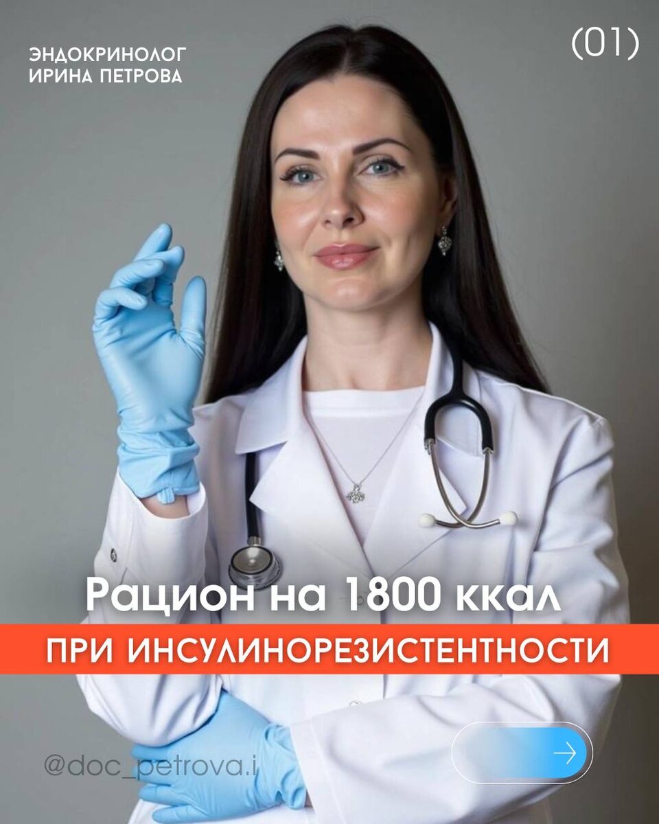 Рацион на на 1800 ккал для человека с инсулинорезистентностью Основные принципы планирования при высоком инсулине👇🏼 👉🏻 Не более 3 основных приема пищи без перекусов — это дает поджелудочной железе возможность «передохнуть» и снижает постоянные скачки инсулина. 👉🏻 Минимум быстрых углеводов: отказ от сахара, белого хлеба, выпечки, сладких напитков, продуктов с высоким гликемическим индексом. 👉🏻 Максимум клетчатки: некрахмалистые овощи, цельные злаки, бобовые, некоторые фрукты. 👉🏻 Достаточное количество белка и полезных жиров, которые способствуют насыщению, стабилизации уровня глюкозы и улучшению чувствительности к инсулину. Пример рациона на 1 день (около 1800 ккал) смотрите в карусели ✔️
