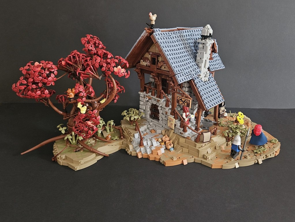 Великолепная кузница от мастера kofi 🔥 LEGO-сборка поражает детализацией: старинный вид, каменная кладка, потрясающая черепичная крыша. Интересно, что серые детали использованы только для каменной дорожки, стен и дымохода — словно кузницу построили из местного камня. Лезвие на наковальне и мешки добавлены для реалистичности, и это работает! Выглядит настолько аутентично, будто перенесёшься в средневековье. kofi — настоящий Iron Builder! Источник: The Brothers Brick