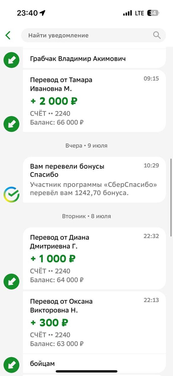 ОТЧЕТ О ПЕРЕВОДАХ ЗА 10.07.2025 г. 💥 Оксана Викторовна Н + 300 р 💥 Диана Дмитриевна Г + 1000 р 💥 СберСпасибо 1242,70 бонусов, округлила и перевела в рубли + 1500 р 💥 Тамара Ивановна М + 2000 р 💥 Владимир Акимович Г + 2000 р 💥 Вероника Васильевна Т + 5000 р 💥 Алена Валерьевна Б + 1000 р 💥 Нина Ивановна И + 500 р Огромное всем Вам спасибо за помощь❤️ Огромное спасибо за постоянство🤝 Вместе до Победы ✊