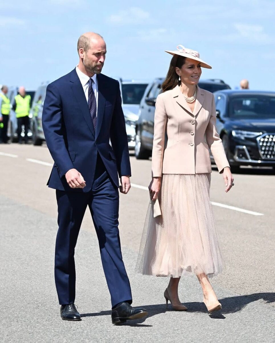 С 8 - 10 июля Эмманюэль Макрон вместе с супругой посетили Великобританию. Что примечательно, это первый визит президента Франции к королеве и королю Великобритании за 17 лет. Последний раз к другой действующей королеве, Елизавете II, приезжал уже бывший президент Франции Николя Саркози. Сейчас Букингемский дворец находится на реставрации, а значит почётных гостей будут принимать в Виндзорском замке. Известно, что визит имел дружескую основу, потому что Карл III очень расположен к Эмманюэлю Макрону и каждый день рождения дарит ему бутылку виски. Для встречи семейные читы в аэропорту Кейт выбрала элегантный пудровый костюм от Dior, и также она подобрала шляпку в цвет. На фоне королевы она выглядит очень блекло Видимо, это было так и задумано, потому что если мы вспомним историю, Елизавета II очень часто надевала яркие пёстрые костюмы, чтобы выделяться на фоне других. Так поступила и Камила. Давайте посмотрим её наряд. Королева Камилла примерила ярко-зелёный образ, чтобы выделяться н