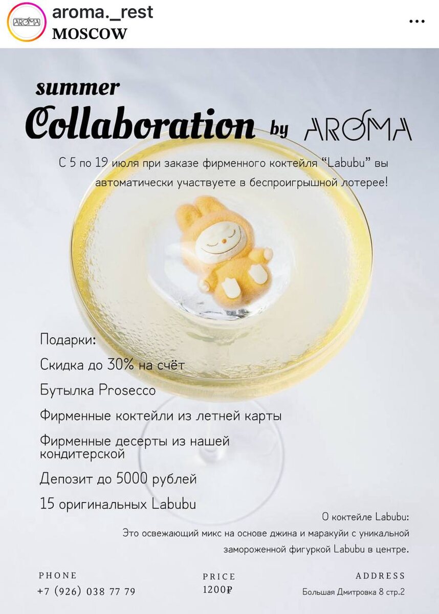 😉🤩😌😌😚😌😋 😉😌😋😌😛😚 И снова обновим списочек подарков в заведениях? ▶️Aroma + Labubu 📱 до 19 июля 🎁 беспроигрышная лотерея ▶️Atlantica + Ucandles 📱 с 1 июля 🎁 вино = свеча ручной работы ▶️LUVU + LUWO 📱 до 22 июля 🎁 мороженое = участие в лотерее ▶️MastersMargaritas + Spunky 📱 с 11 июля 🎁 розыгрыш призов ▶️Честная Рыба + Cha U Kao 📱 с 8 июля и пока в наличии 🎁 сет = косметика ▶️MYST + UCandles 📱 до 15 июля 🎁 коктейль = молочко для тела еще до 12 июля MYST + COSAREVE и вот это проверьте тоже розыгрыш ▶️SentiMenti + Darling + Japan 📱 до 25 июля 🎁 розыгрыш путешествия и подарки от Darling при заказе меню ивента ▶️Prscco.bar + PurEra 📱 до 3 августа 🎁 коктейль = саше в подарок ▶️Хорошая девочка + Celimax 📱 пока подарки в наличии 🎁 десерт и коктейль = подарок из двух миниатюр и две полноразмерки 🩷перед визитом уточняйте, есть ли подарки в наличии *пост содержит ссылки на соцсеть, деятельность которой запрещена на территории РФ _______________________