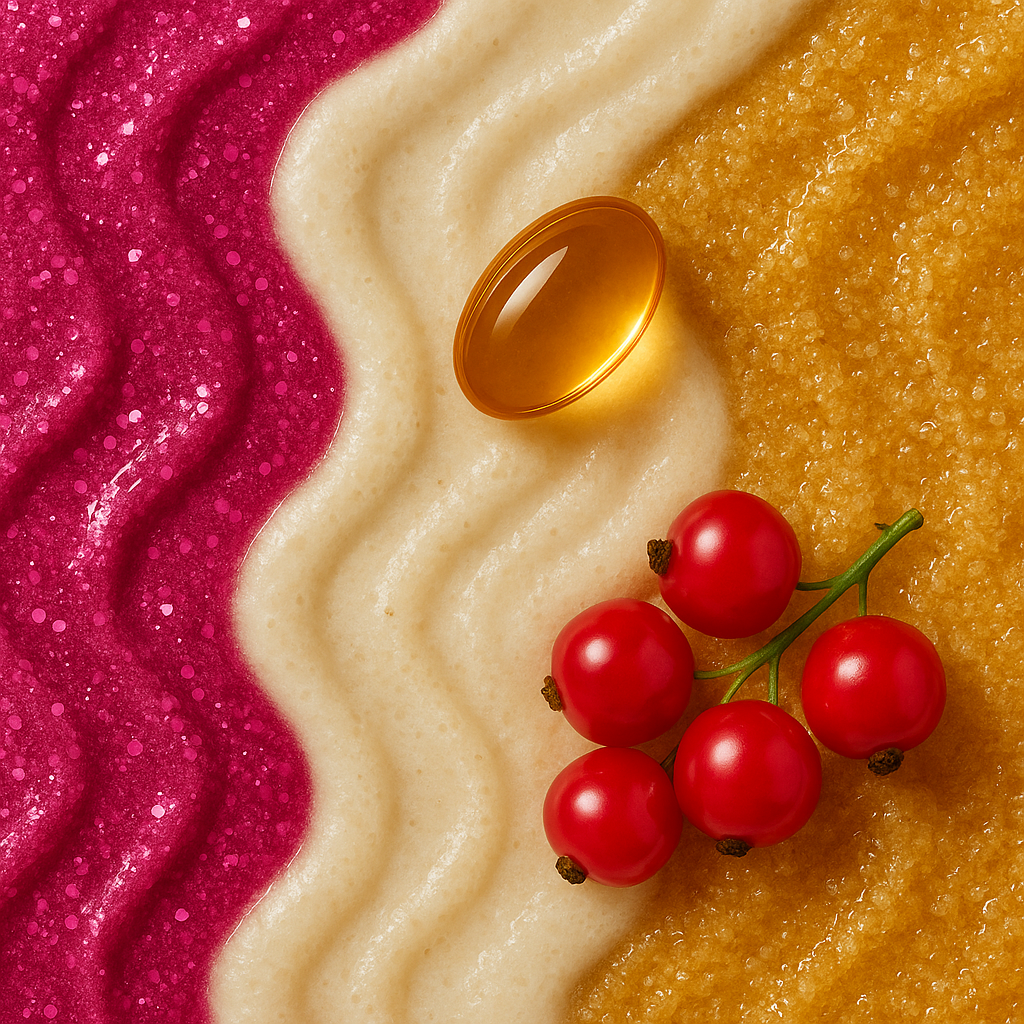 ✨ Витамин Е в скрабах: больше, чем уход ✨ Когда мы говорим о скрабе, чаще всего думаем о механическом очищении: удалении ороговевших клеток, разглаживании поверхности кожи, подготовке к увлажнению. Но по-настоящему эффективный скраб — это не просто отшелушивающий продукт. Это средство, которое сочетает в себе очищение, восстановление и уход. Особенно если в составе — витамин Е (токоферол). 💛 Зачем добавлять витамин Е в скраб? Витамин Е — один из самых мощных природных антиоксидантов. Он защищает клетки кожи от воздействия свободных радикалов, которые ежедневно атакуют нас из-за стресса, экологии, УФ-излучения и даже недостатка сна. Во время скрабирования кожа становится особенно восприимчивой, и именно в этот момент витамин Е начинает действовать как мягкий защитник и восстановитель. 🔬 Вот что делает витамин Е в составе скраба: — Успокаивает кожу после механического воздействия. Особенно важно для чувствительной кожи, склонной к покраснениям.