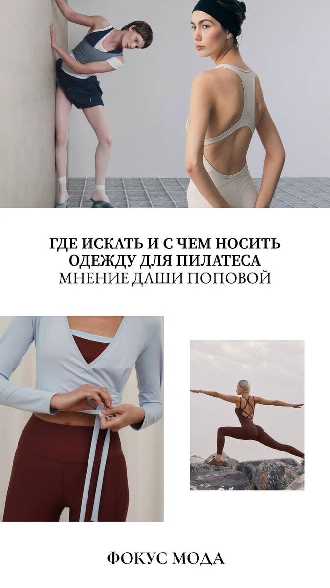 «Комфорт — не повод жертвовать стилем». В новом материале на focusmoda.ru ведущая проекта «Фокус Мода» и модель Даша Попова делится личными рекомендациями по выбору одежды для пилатеса — и рассказывает, как интегрировать форму в повседневные образы. «С удовольствием использую спортивные легинсы и в повседневных образах. Это экономия времени, если к 7 утра нужно на йогу, а потом — по делам», — отмечает Даша. «Люблю миксовать спорт и кэжуал в дневных образах — мне должно быть комфортно, но про красоту и ухоженный внешний вид забывать не стоит». В статье — подборка российских брендов, рекомендации по материалам и фасонам, а также примеры стилизаций. Читайте на сайте focusmoda.ru #ФокусМода_статья