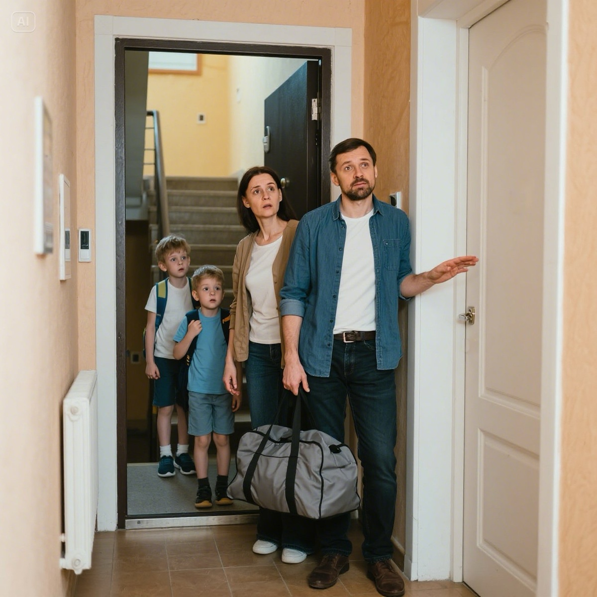 Андрей удивлённо взглянул на жену и открыл дверь. На пороге стояли Сергей, Оля и их двое детей. В руках у Олье была большая сумка.