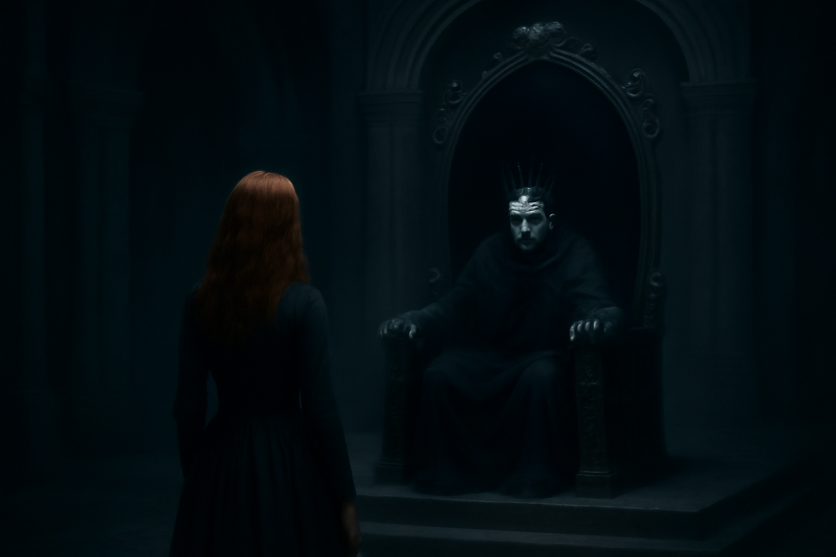 Он открыл дверь, и Анна увидела огромную комнату с высокими потолками. В центре стоял трон из черного камня, а за ним — гигантское зеркало, которое отражало не комнату, а какой-то другой мир.