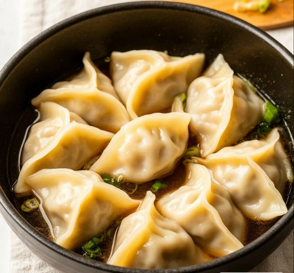 - Подача.Пельмени можно подавать горячими с маслом, сметаной, уксусом или соевым соусом. Их также можно обжарить на сковороде после варки.
