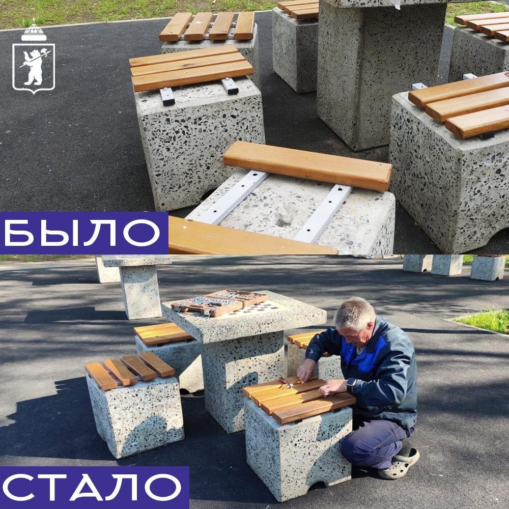А также перевернули малые архитектурные формы. В мэрии Ярославля показали, как выглядел шахматный участок благоустройства в парке 30-летия Победы в Брагино. Столы и урны вандалы разрисовали, а пуфы для шахматистов перевернули вверх ногами. Восстановительные работы пришлось проводить коммунальщикам. «Чисто не там, где убирают, а там, где не мусорят. Благоустроенные зоны парка 30-летия Победы в Дзержинском районе подверглись актам вандализма. Сотрудники коммунальных служб устранили поломки уличных пуфов, а также очистили шахматные столы и мусорные урны от надписей»,— рассказали в мэрии Ярославля. Власти обратились к горожанам: «Мэрия города Ярославля призывает жителей беречь и ценить общее городское имущество. Вместе мы сохраним красоту Ярославля!»
