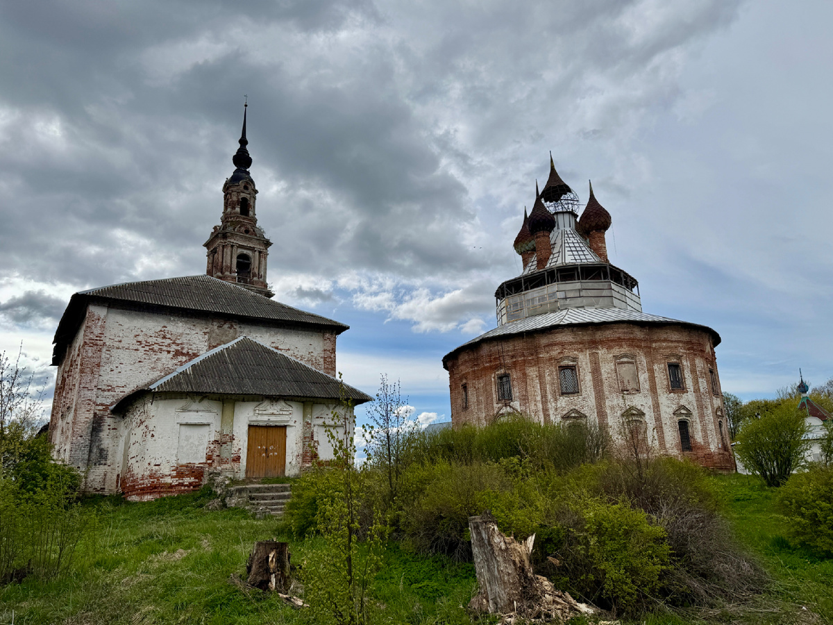 Спустя три года я снова стою на ярославской земле в селе Курба. Казанский храм, уникальный 16-лепестковый шедевр 1770 года, по-прежнему скрыт лесами. Рядом — в стадии реставрации Воскресенская церковь, а на колокольне лишь добавилась новая роспись.