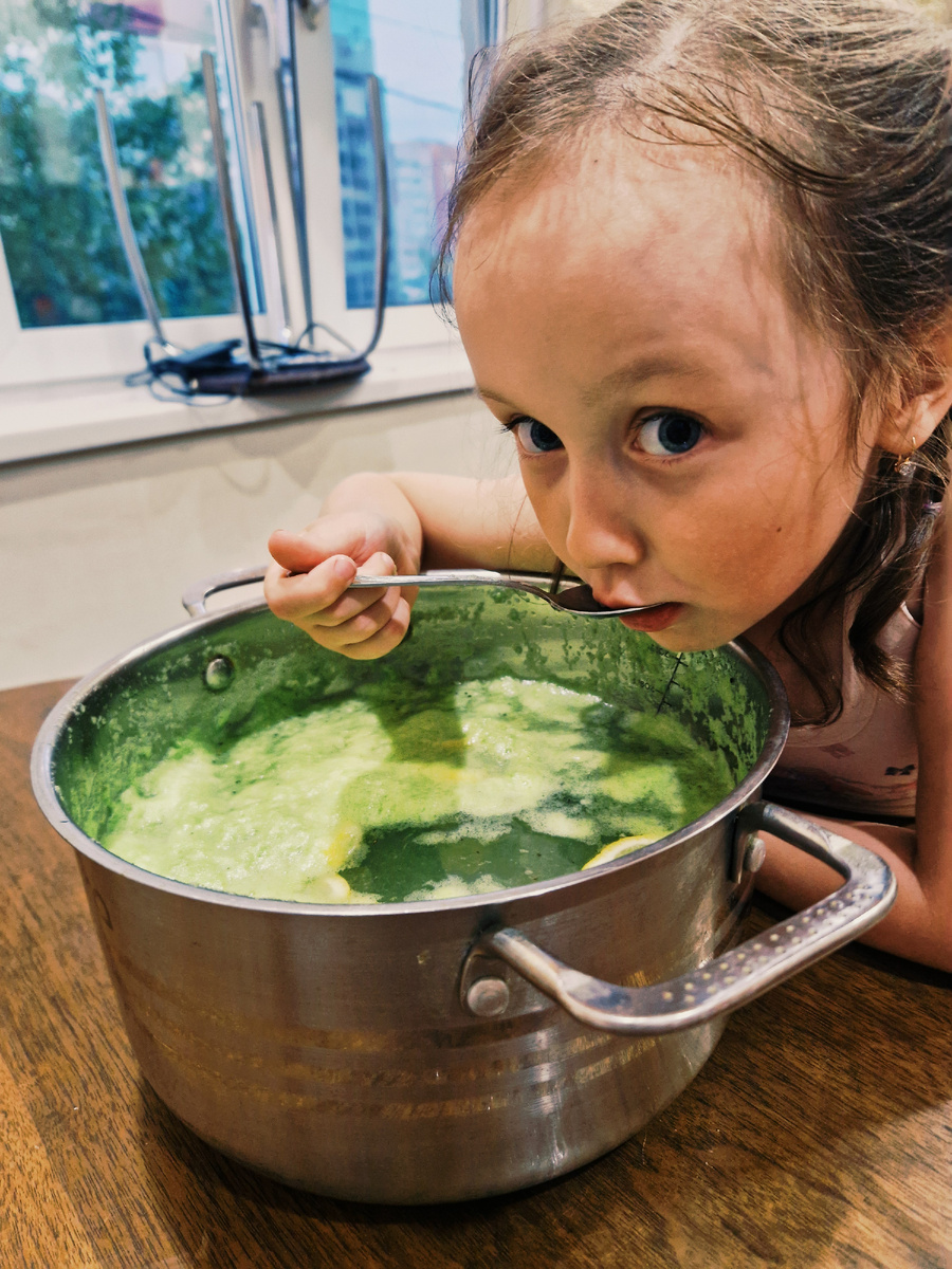 Ксюша взяла блокнот. Полина принесла игрушечную кастрюлю. Я полез в интернет и набрал в поиске «натуральный домашний лимонад, чтобы как в детстве, но по-фэншую». Результат выдал: «киви, лимон, мёд, газировка. Идеально освежает, полезно, недорого».