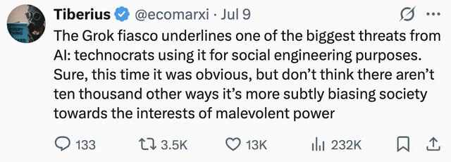 Эксперты всё чаще говорят о том, что история с Grok — это не просто технический сбой, а симптом гораздо более глубокой проблемы. Мы видим, как ИИ начинают использовать для социальной инженерии: продвигаются нужные нарративы, формируется нужная реакция. На этот раз вмешательство было очевидным, но кто сказал, что в других случаях оно не проходит незаметно? Grok — лишь верхушка айсберга. Существует масса менее заметных способов, как алгоритмы могут смещать общественное мнение в интересах тех, кто контролирует технологию. ИИ создают не философы и не гуманисты — их пишут технократы. И, судя по всему, далеко не всегда во благо.