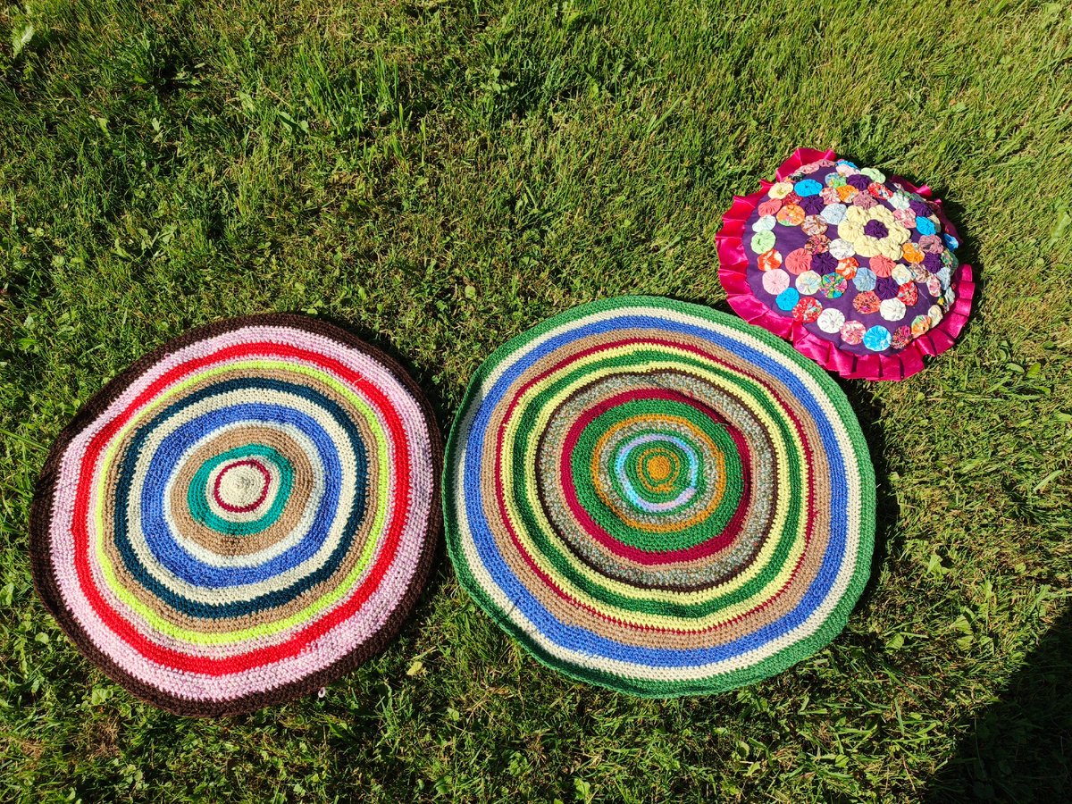 Конечно, каждая вязальщица знает куда использовать остатки пряжи🧶. Но есть такие остатки ( это обычно очень старые, а то и что-то от распущенных вещей). В клубочках они выглядят не очень, а выкидывать жалко. Вдохновение пришло ко мне внезапно, когда в социальных сетях я наткнулась на фотографии красивых вязаных ковриков и поняла, что хочу попробовать сделать что-то подобное🤔 Крючком я не вяжу, поэтому выбрала самый простой вид круглых ковриков. Поначалу получалось не очень аккуратно, так как нитки была все разной толщины и текстуры, но я не расстраивалась. В процессе вязания я поняла, что получается-то совсем не плохо. Было интересно комбинировать цвета, создавая неожиданные сочетания. Иногда я даже находила старые клубки, которые давно забыла, и это вызывало ностальгические воспоминания о проектах, которые я делала раньше. Это была моя история, каждый цвет был связан с каким-то моментом или событием. В конце концов, когда коврик был готов, я с гордостью разложила его на полу, НО