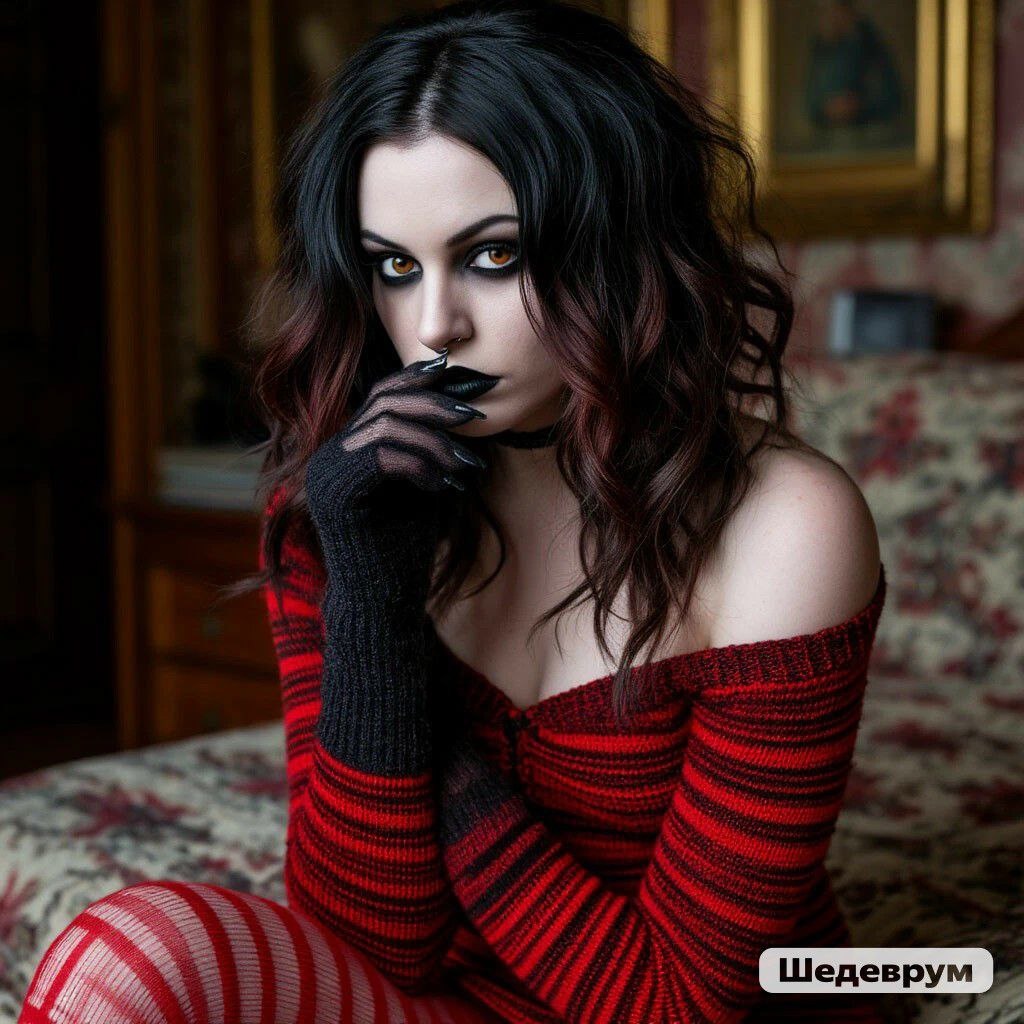 Дженнифер натянула на бедра красные полосатые колготки, влезла в трикотажное короткое платье, которое приятно обволакивало все девичьи формы, и взялась за добавление основных деталей. Непослушные средней длины волосы вскоре были уложены, а концы загнуты в противоположные стороны. Шрамы на руках скрыли полупрозрачные темные митенки. Последним штрихом послужил готический макияж. Оценив проделанную работу в зеркале-псише, Дженнифер довольно кивнула. Затем тщательно растушевала пальчиком черную помаду в уголках губ и посмотрела на время. #цитата_Морна_Джесси_Уэйн #читаю_авторов@shulguna207 #ридеринг