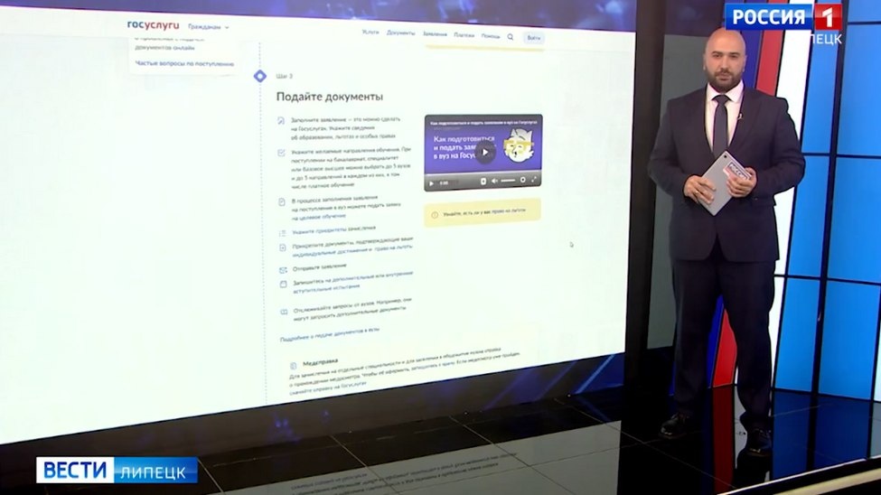 В российских вузах сейчас в разгаре приёмная кампания. Пройти процесс поступления быстро, удобно и без очереди можно на Госуслугах. В прошлом году сервис помог найти вуз мечты и поступить почти семистам тысячам абитуриентов по всей стране. И вот какие новшества в этом году. Сервис «Подбор вуза» помогает найти университет и специальность под свои интересы и баллы. Магистратура и аспирантура: подать заявление теперь можно не только на бакалавриат и специалитет. Еще одна новинка — электронный студенческий билет. Появится автоматически после зачисления в те вузы, которые участвуют в эксперименте. Сейчас к сервису подключены более тысячи семисот университетов. На госуслугах много и других полезных функций. Например, заявление на бакалавриат и специалитет можно подать в 5 вузов, выбрав в каждом из них до 5-ти направлений. В магистратуру и аспирантуру — без ограничений. Документы об образовании, результаты ЕГЭ, достижения и льготы можно загрузить в личном кабинете. Они приравниваются к оригин