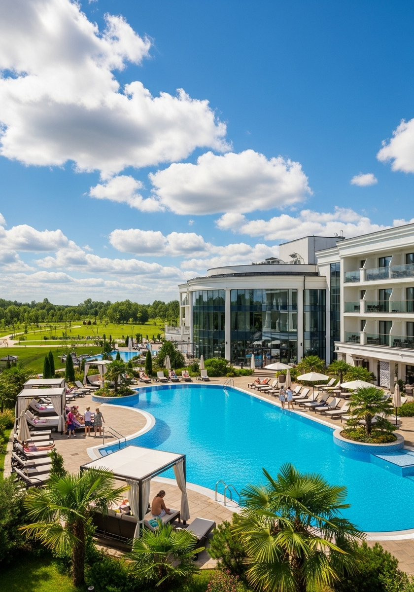 - Какие отели Калужской области с бассейном лучше выбрать для романтического отдыха? Для романтического отдыха подойдут Four Points by Sheraton Kaluga с люксовыми номерами, Welna Eco Spa Resort с коттеджами среди природы и SK Royal Kaluga с бунгало у реки.