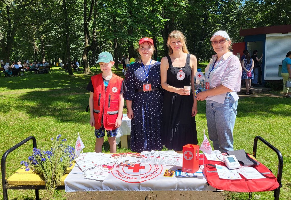 ⚡️Хорошее настроение, угощения и подарки. ✅Интересно и познавательно было на площадке районной организации Белорусского Красного Креста. ➡️Председатель организации Антонина Стасевич и волонтеры рассказывали о правилах оказания первой помощи, для детей предусмотрены игры и конкурсы, сладкие угощения. 💦В рамках акции «Жара» угощали гостей праздника водой.