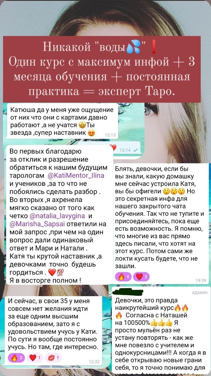 Когда я только начинала работать с Таро, честно скажу, сначала не хотела с ними связываться. Слишком много карт, слишком много значений, и как всё это запомнить? Я тогда уже работала с оракулом Ленорман, где мне всё казалось проще и понятнее. Но со временем поняла, что хочу знать о Таро всё, что это совсем другой уровень для меня, другая система, которая мне интересна. И тут начался настоящий хаос — сотни видео, тренингов, книг, методичек. Я пыталась всё это впитать, но информация была разбросана, и в голове только путаница росла. Тогда я решила, что нужно структурировать мои знания, разложить всё по полочкам и обязательно практиковать. Без практики теория — просто пук в воду. И именно этот опыт я вложила в своё обучение — чтобы ты не терялся в море информации, а шаг за шагом, с поддержкой и практикой, уверенно шёл к мастерству в Таро. Если ты тоже чувствуешь, что тонешь в информации и не знаешь, с чего начать — я помогу тебе сделать первый уверенный шаг.