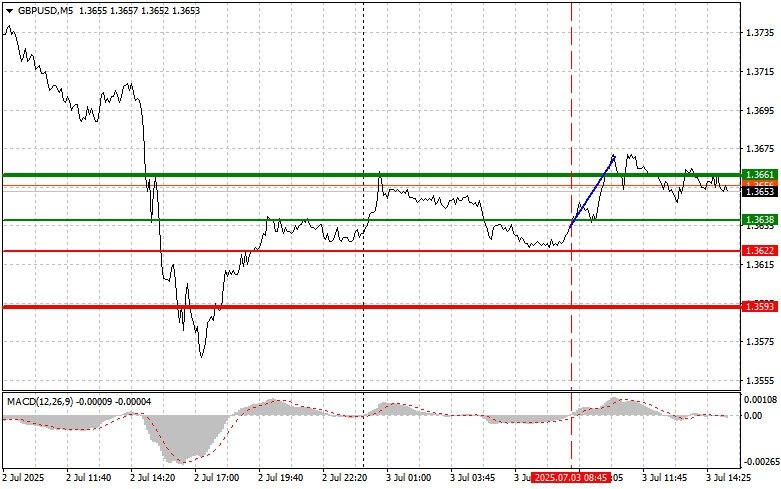 https://basechop.ru/wordpress/?p=49214 Разбор сделок и советы по торговле британскому фунту Тест цены 1.3638 пришелся на момент, когда индикатор MACD только начинал движение вверх от нулевой отметки, что стало подтверждением правильной точки входа на покупку фунта и вылилось в рост на 30 пунктов. Британский фунт вырос в первой половине дня на неплохом значении индекса PMI для сферы услуг Великобритании. Влияние PMI на фунт стерлингов обусловлено тем, что сфера услуг является ключевым сектором британской экономики. Рост деловой активности в этом секторе свидетельствует об общем оздоровлении экономики и повышает привлекательность фунта для инвесторов. Однако стоит учитывать, что PMI — это лишь один из множества факторов, влияющих на валютный курс. В долгосрочной перспективе динамика фунта будет зависеть от таких факторов, как инфляция, процентные ставки, состояние рынка труда и геополитическая обстановка. Движение пары внутри во второй половине дня придется на публикацию данных по рын