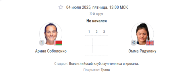 🔥 Поддержке трибун: Энергия британских болельщиков может психологически сломить Соболенко. Итог: Соболенко — фаворит благодаря мощи подачи и опыту, но Радукану способна создать проблемы за счёт стабильности и тактической гибкости. Ожидается упорная двухсетовая победа белоруски (7:5, 6:4) с тоталом геймов 20+. Решающий фактор — первые 30 минут матча: если Радукану не уступит более 2 геймов