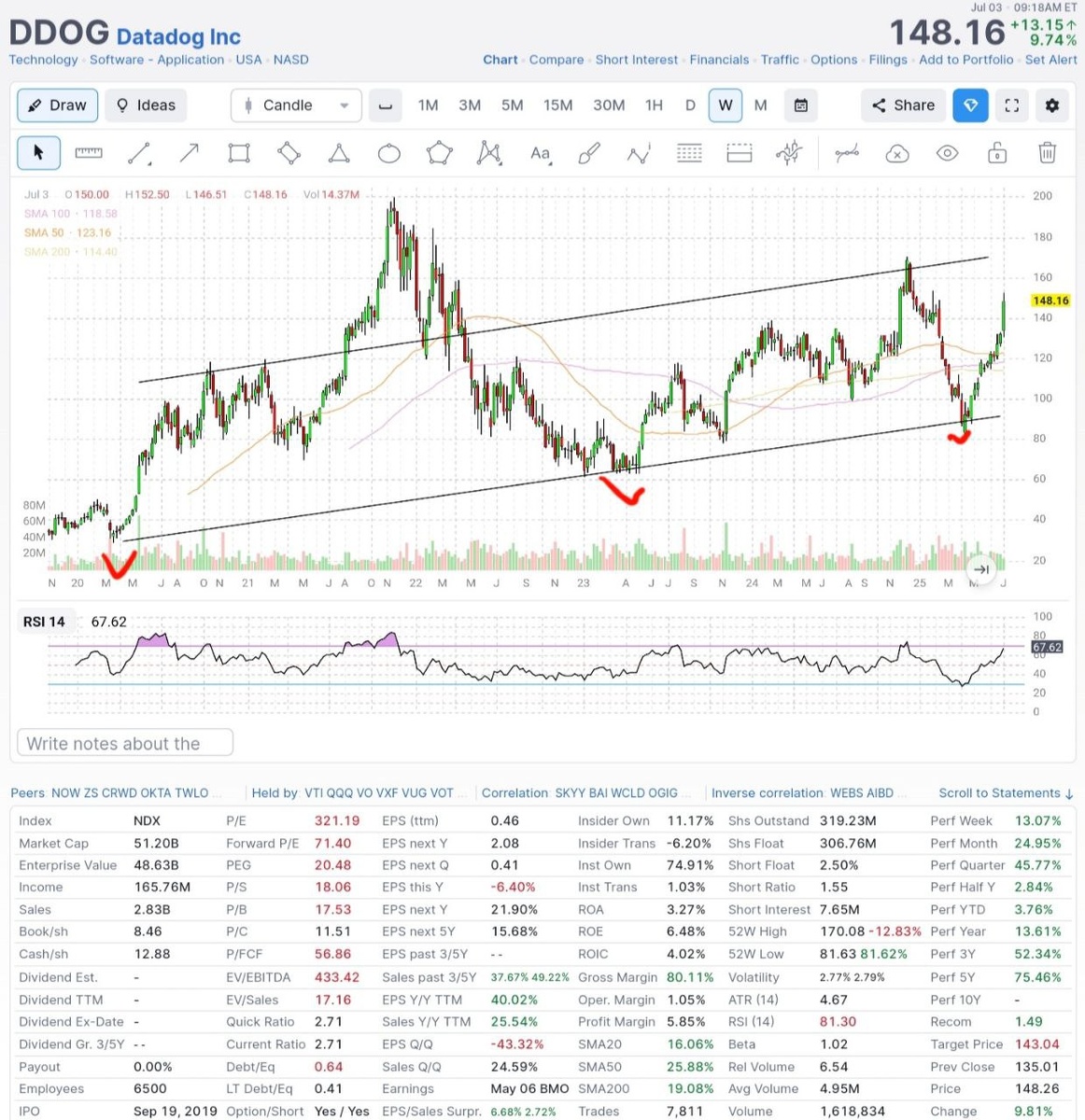 🔥DataDog в S&P 500: что это значит для инвесторов? DataDog (#DDOG) войдет в индекс S&P 500 ($SPX) 9 июля, заменив Juniper Networks (#JNPR). Это вызвало рост акций на 8,7% в предторговых сессиях, создавая краткосрочные возможности для инвесторов. Компания конкурирует на рынке облачных наблюдений с Elastic (#ESTC), Amazon (#AMZN), Microsoft (#MSFT) и Cisco (#CSCO). Включение в S&P 500 подчеркивает её стратегическую значимость в управлении инфраструктурой. Новый статус может увеличить спрос на акции со стороны индексных фондов и ETF, поддерживая их стоимость. Фундаментальные показатели DataDog впечатляют: рыночная капитализация $46,63 млрд и выручка $761,55 млн за 1й квартал 2025 года, что на 25% больше, чем в прошлом году. Компания активно заключает крупные контракты, что свидетельствует о высокой востребованности её услуг. Вывод: Присоединение к S&P 500 и сильные финансовые показатели могут стать драйверами роста акций DataDog, особенно на фоне увеличивающегося спроса от институцио