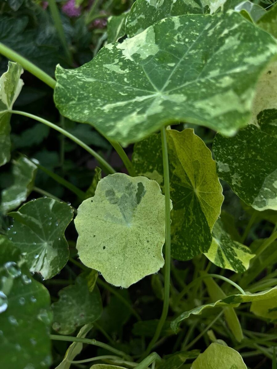 В этом сезоне активно тестирую Стефанию для бедных✨ Знакомьтесь, настурция или капуцин. Бульвар Капуцинок связан с ней мягко говоря никак Род однолетних травянистых растений из Южной Америки. С родом «Стефания» тоже связан никак Единственное, с чем правда связана настурция – мои детские воспоминания Да, у меня есть целый список любимых цветов из детства, как-нибудь расскажу Итак, пару лет я грезила о настурции в саду. Листья великолепные, а плоды на вкус – как каперсы. Звучит, как будто бы мне это надо Но как-то все не складывалось, хотя в свой первый садовый год, я выращивала ее в горшочке, как реальную замену стефании Но один пропущенный полив оставил меня с сухими палками Так что записываем, если выращиваем в комнате – пропускать полив нельзя✍🏻 Настурции бывают 2 типов: лиана и микро-куст На фото кустовая вариегатная версия, и честно, как будто с таким варом вообще не нужны эти ваши дорогущие варные алоказии🗿 Листы – просто отвал всего, хочется бесконечно рассматривать,