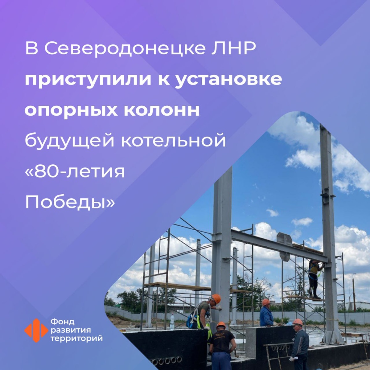 В ЛНР началось возведение каркаса здания котельной «80-летия Победы» Объект мощностью 58 МВт строят в Северодонецке под контролем Фонда развития территорий. На текущий момент: 🟠 произведена заливка и армирование фундамента главного здания котельной; 🟠 ведутся работы по установке опорных колонн; 🟠 готовят фундаменты под резервуары для хранения резервного топлива и баков запаса воды. По расчетам специалистов, котельная согреет жителей порядка 360 домов, а также 14 социальных объектов. ➡️ Пуск теплоносителя потребителям в режиме опытно-промышленной эксплуатации запланирован в предстоящий осенне-зимний период — на октябрь этого года.