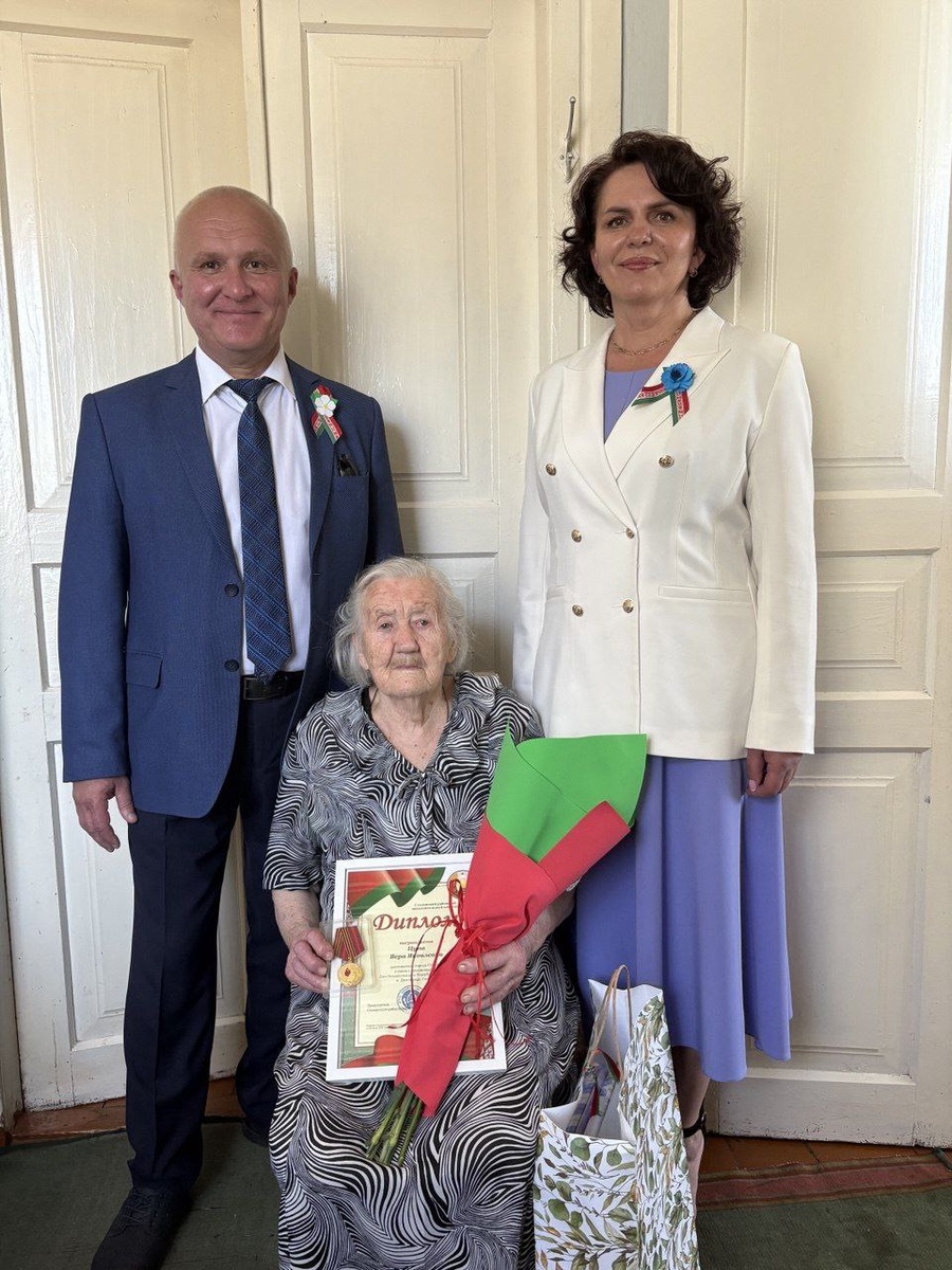 Долгожителя, узницу, уроженку г. Столина Цупу Веру Яковлевну поздравили с Днем Независимости Республики Беларусь и 470-й годовщиной г. Столина начальник управления по труду, занятости и социальной защите Шелест В. Н. и председатель Столинской районной организации ОО «БСЖ», директор Столинского ТЦСОН Мороз Л. В. ▪️В честь праздника Цупа В. Я. награждена почетной грамотой Столинского райисполкома, ей вручены памятные подарки.
