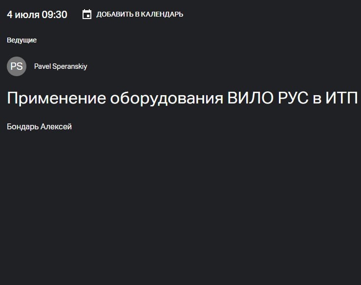 Применение оборудования ВИЛО РУС в ИТП. Завтра, 04.07.2025, в 9.30. Регистрация по ссылке.