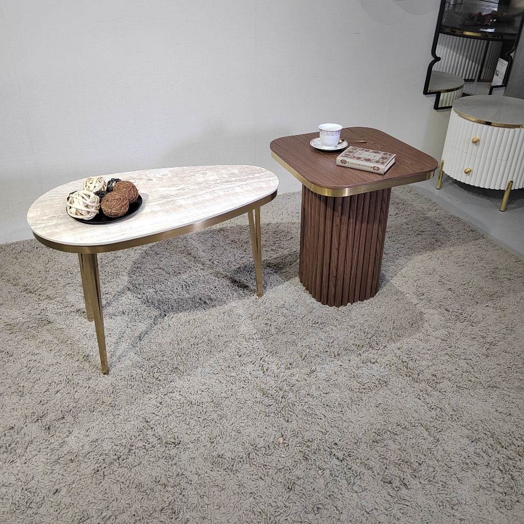 Мы все хотим идти в ногу со временем, и сейчас уже ни кто не хочет себе домой стенку как у наших родителей и ковер на стене. Но помимо моды есть еще практичность, удобство использования, эргономика пространства. И не всегда надо гнаться бездумно за модой и бездумно наполнять свой дом предметами с которыми Вам будет сложно жить. Что бы угнаться за модой не обязательно срочно делать ремонт всей квартиры, можно добавить модные но при этом нужные в доме предметы интерьера. Например журнальные столики в гостиной Это не только практичная вещь, журнальный столик может стать прекрасным украшением Вашей гостиной. В журнальном столики можно соединить несколько материалов которые не увязаны в Вашей гостиной Или добавить какой то акцент, который разнообразит привычный интерьер комнаты На фото перед Вами пара журнальных столиков сделанных в дополнение к обеденному столу, который сочетал в себе разные материалы. Шпон ореха, керамогранит и нержавеющаю сталь, посмотреть стоимость столиков можно