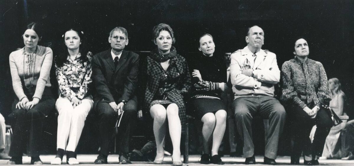 Фото из архива театра с репетиции «Турбазы», спектакля, закрытого и, несмотря на это, вошедшего в историю отечественного искусства ХХ века.