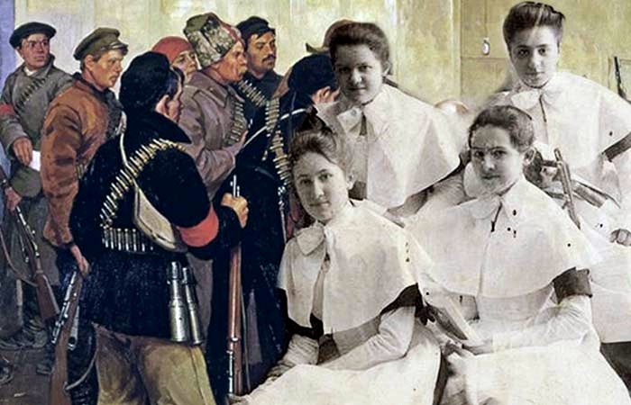 Смольный институт принимал не только дочерей аристократов, но и девочек из мещанских семей, которые оставались без родителей или с одной матерью. С шести лет и до совершеннолетия они жили внутри этих стен — тихий, замкнутый мир, где каждый день был расписан буквально по минутам, и все подчинялись установленным правилам. Всё, что происходило за воротами, для многих оставалось загадкой. Они почти не соприкасались с улицей, и реальность той России, что готовилась к свержению старого порядка, для них была как другой континент. Но однажды этот чужой мир ворвался внутрь.