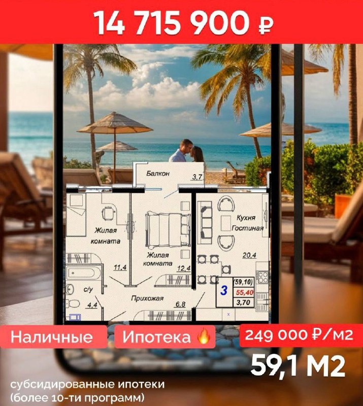 УНИКАЛЬНЫЙ ЛОТ СТОИМОСТЬЮ 249 000 за м²😍 ▪️Стоимость 14 715 900 ▪️Нет удорожания при ипотеке ▪️Возможно использовать льготные программы. Например: Семейная ипотека Ипотека 9 000 000₽ Ставка 5.99% П.В. 5 715 900₽ ПЛАТЕЖ 53 902 РУБ В МЕСЯЦ Новостройка с субсидией Ипотека 9 000 000₽ Ставка 0.11% П.В. 5 715 900₽ ПЛАТЕЖ В ПЕРВЫЙ ГОД 883 РУБЛЯ ВСЕ ПОДРОБНОСТИ У СПЕЦИАЛИСТА. ЖМИ НА «КОНСУЛЬТАЦИЯ» В ШАПКЕ ПРОФИЛЯ 🔑