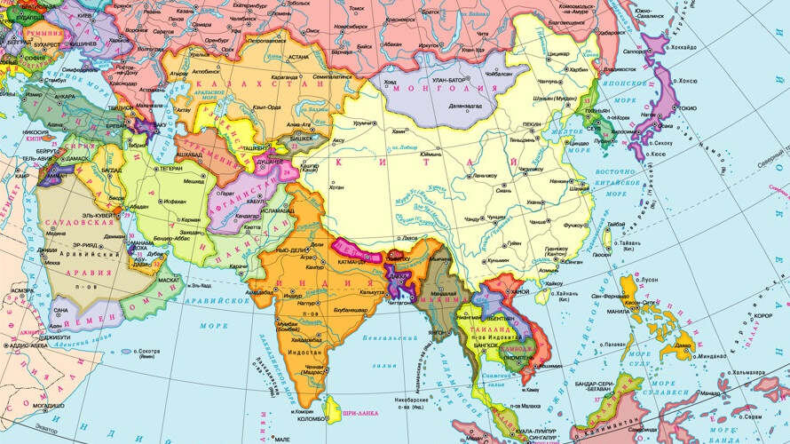 На территории огромного материка располагаются очень разные государства – от маленьких вроде Бахрейна и Сингапура до густонаселенного Китая. Некоторые из них расположены одновременно и в Азии, и в других частях света: Турция, Россия и Казахстан – в Европе, Индонезия – в Океании, Египет – в Африке.