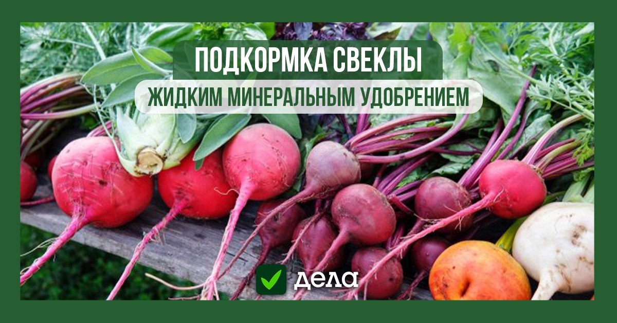 Подкормка свеклы жидким минеральным удобрением ✅ Когда корнеплод вырастет до 5 см в диаметре, проведите комплексную подкормку. ✅ На 10 л воды понадобится по 1 столовой ложке суперфосфата и калимагнезии, 1 чайная ложка мочевины, ½ чайной ложки борной кислоты и 1 г марганцовки. ✅ За месяц до планируемой уборки урожая подкормите свеклу раствором из 1 столовой ложки сульфата калия и 3 столовых ложек суперфосфата на 10 л воды.