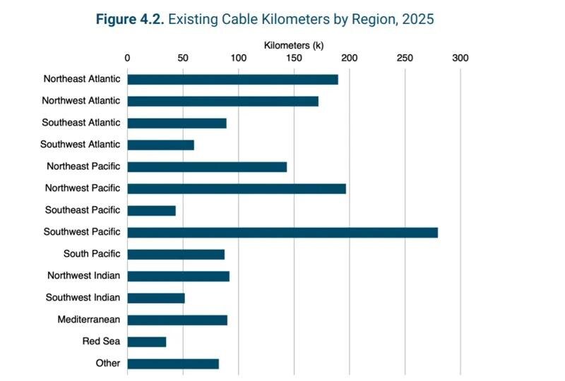 ◾️1,6 млн км новых кабелей, вероятно, будет проложено к 2040 году; ещё 850 тыс. км устаревших кабелей будет списано к тому же сроку, 50 % из них — уже к 2030 году.;