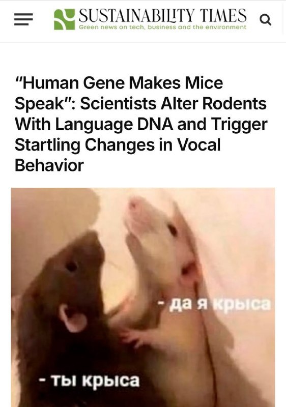 Учёные из Рокфеллеровского универа замутили эксперимент: внедрили мышам человеческий ген NOVA1, который у нас отвечает за речь. После апгрейда грызуны начали обмениваться необычными звуками, а их «общение» стало заметно меняться — прямо эволюция на глазах. Что там мыши обсуждают между собой — пока загадка. Но явно не про сыр! Подробнее: https://hard-tm.su/threads/99573/ 🕹HARD-TM — Подписаться