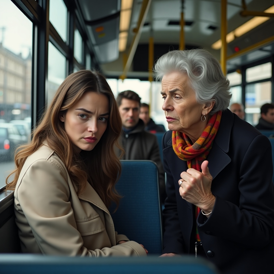 Не думала, что обычная поездка в автобусе может закончиться для меня комом в горле и дрожью в руках. Я не из тех, кто устраивает сцены. Не скандалистка. Но бывает момент, когда тебя просто вынуждают обороняться. Мне 25. Четвёртый месяц беременности. Живот пока не очень заметен — особенно под широким пальто, но тошнота и слабость бывают такие, что ноги подкашиваются. В тот день я ехала домой от врача, уставшая, слегка побледневшая, просто мечтала дотянуть до своей остановки и упасть на диван. Я зашла в автобус на конечной и села у окна. Проехали три остановки, и вот на четвёртой заходит бабушка. Я её сразу приметила — крепкая, бодрая, яркая помада, сумочка на плече, шаг уверенный. Знаете, есть такие — видно, что лет 70+, но энергии как у 50-летней. Она прошлась вдоль салона и встала передо мной. — Девушка, уступите место, пожалуйста, — сказала она громко, чётко, глядя мне прямо в глаза. Я подняла взгляд и сразу почувствовала, как внутри всё сжалось. — Извините, но я не могу встать, — ти
