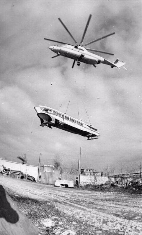 На фотографии небесный гигант Ми-26 поднимает теплоход на подводных крыльях "Ракета-249" (1980-е годы)!