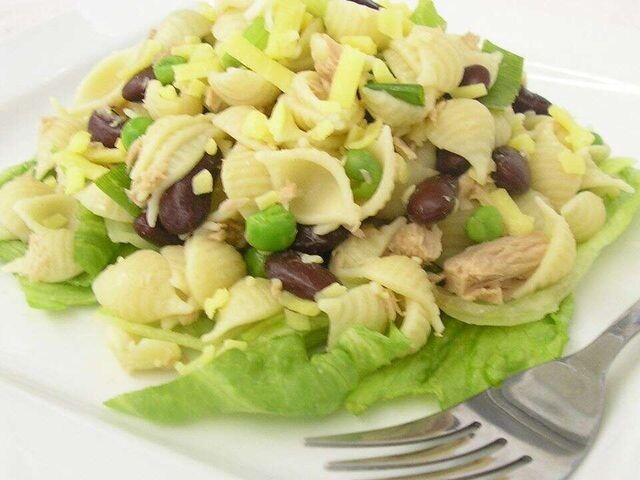Салат из макарон с тунцом Салат из макарон, который обязательно понравится каждому! ⌛ Подготовка: 15 мин. ⏰ Приготовление: 25 мин. 🍴 Количество: 6 порций Ингредиенты ✅ 1 чашка макарон ракушка ✅ 1 пучок зеленого лука, нарезанный ✅ ½ чашки салата айсберг, промытый и нарезанный ✅ 1 (150 гр) банка тунца, осушенная ✅ 1 (450 гр) банка горошка, осушенная ✅ ½ чашки измельченного сыра Чеддер ✅ ½ чашки сливочного итальянского салатного соуса или больше по вкусу. Инструкция приготовления 1. Наполните большую кастрюлю слегка подсоленной водой и доведите до кипения. Всыпьте пасту ракушку и снова доведите до кипения. Варите пасту без крышки, периодически помешивая, до готовности, но не теряя упругости, около 11 минут; слейте воду. 2. Положите зеленый лук и салат в большую миску. Добавьте макароны, тунец, горошек и тертый сыр Чеддер, хорошо перемешайте. Добавьте заправку и перемешайте. 📷 https://furshett.ru/uploads/salaty/443c4af6-189c-434c-9092-4e005e3d4613.jpg 👌 Больше рецептов на Furs