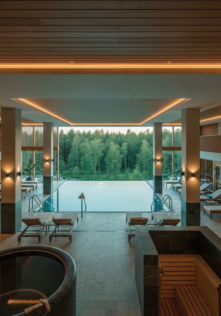 Современный спа-отель расположен в самом сердце Курортного района, в поселке Репино, где сочетаются целебный воздух соснового леса и близость к песчаным пляжам Финского залива. Комплекс выполнен в скандинавском стиле с панорамными окнами и террасами, создавая атмосферу гармонии с природой.