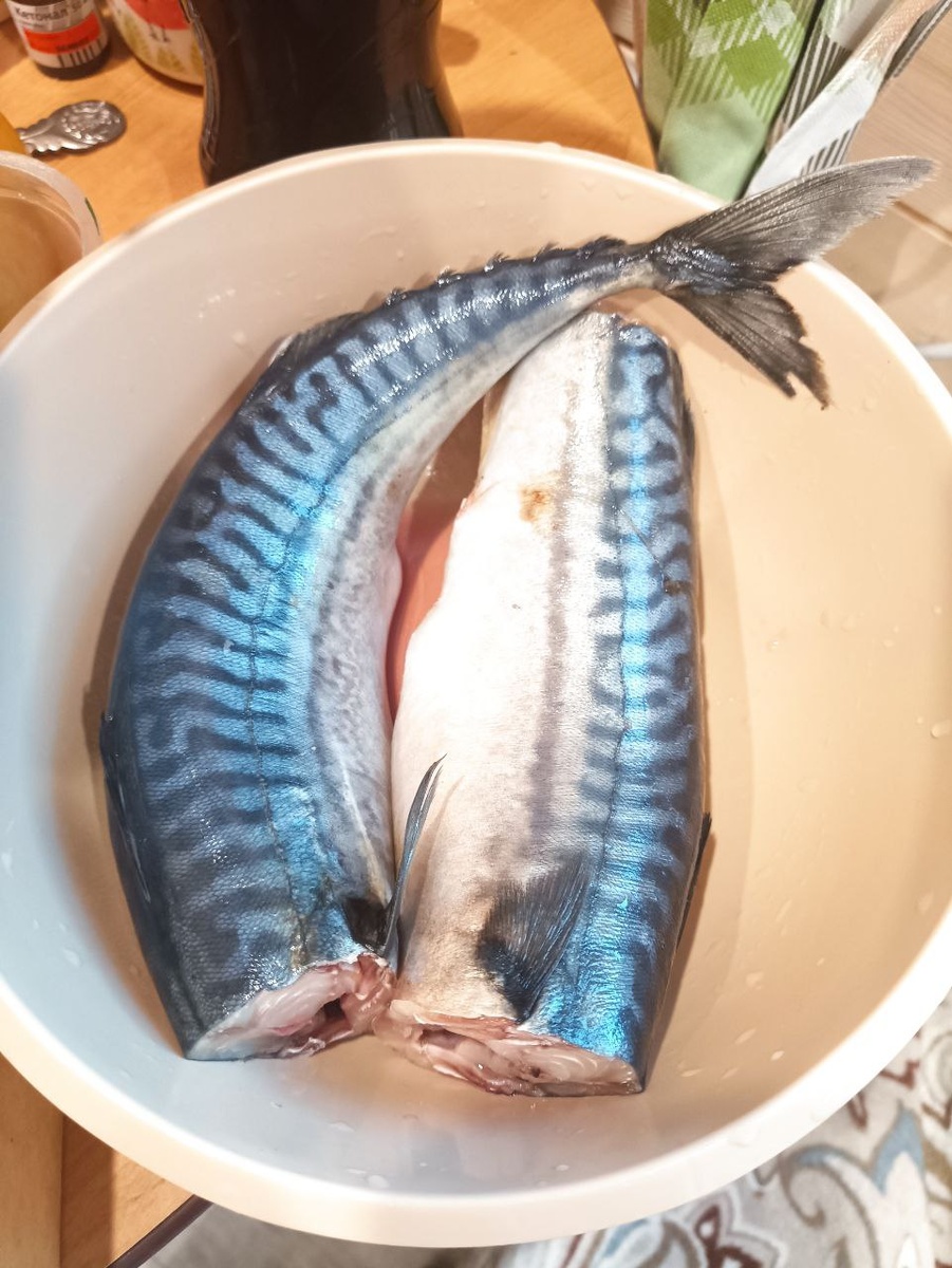 Попалась прекрасная свежая скумбрия, жирная и крупная! Решила засолить, завтра уже можно кушать🥰🐟