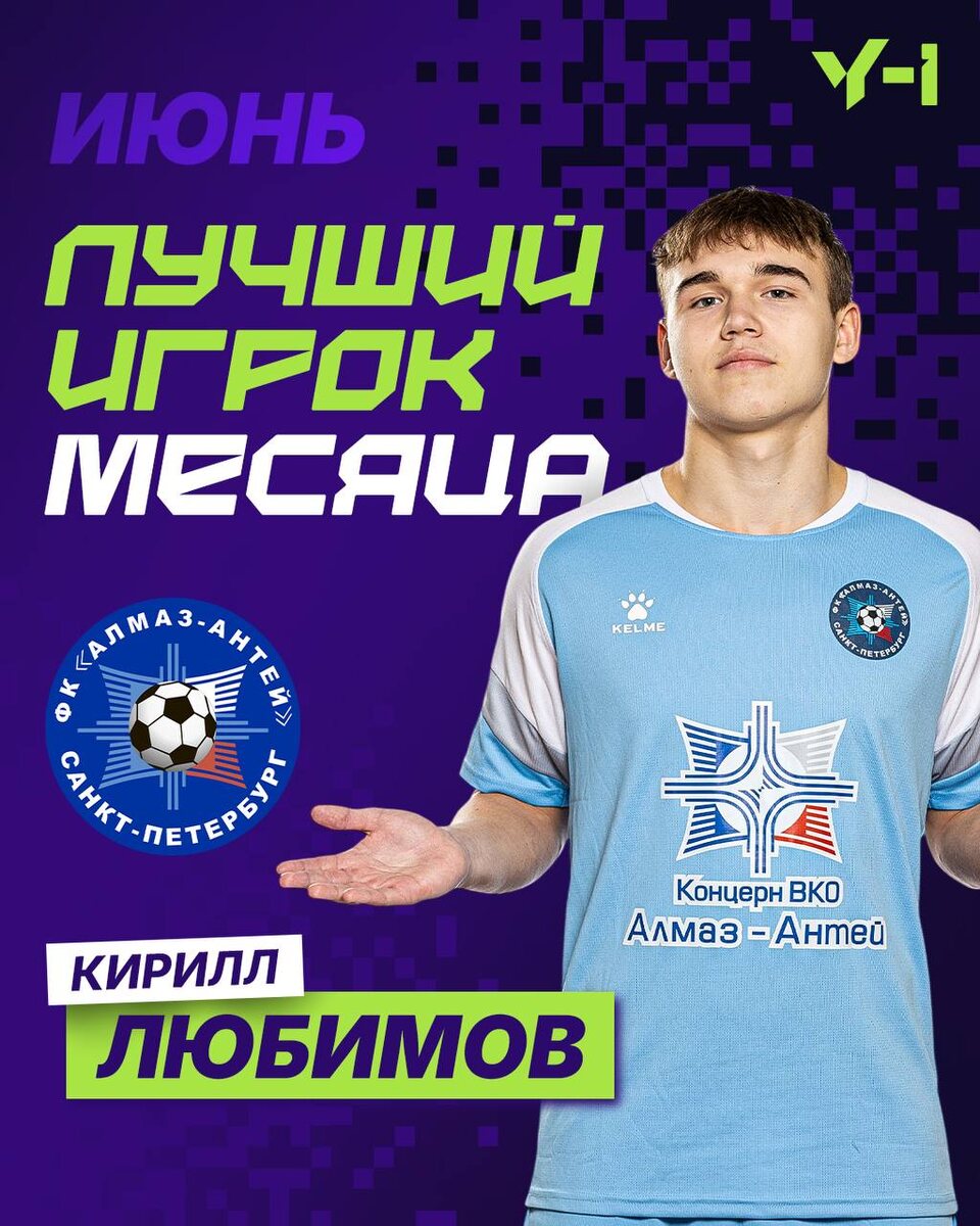 Кирилл Любимов – лучший игрок июня в ЮФЛ-1!🏅 Прогресс не стоит на месте – теперь мы награждаем самых-самых топчиков месяца. Игрок «Алмаз-Антея» удостоился чести быть первым в новой номинации 💎 150 ❤️ и объявляем лучшего в ЮФЛ-2!