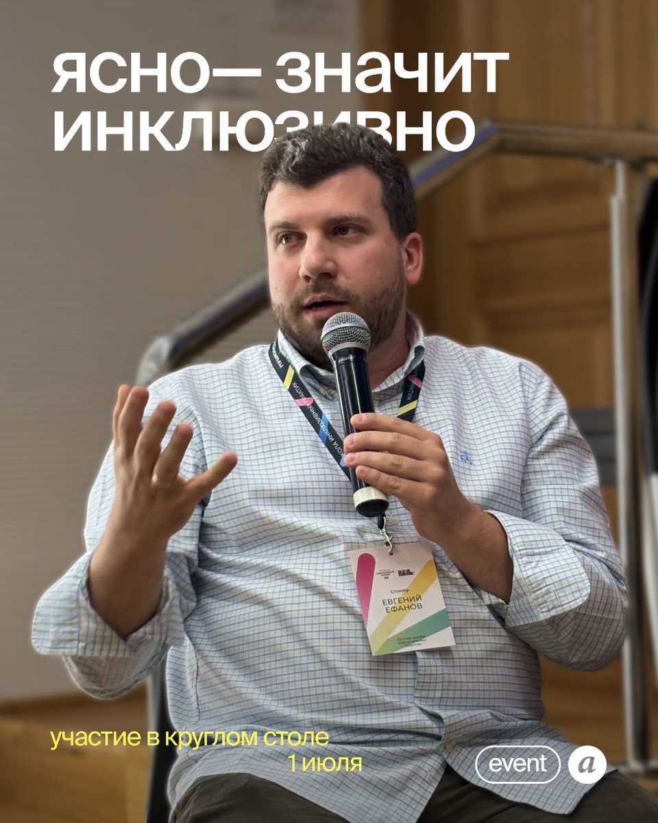 Где начинается инклюзия? С простого и важного — ясных слов и понятной навигации. 1 июля Женя Ефанов поучаствовал в круглом столе «Ясный язык. Разработка и создание материалов и сред». Вместе с экспертами из музеев, образования и благотворительности говорили о том, как превратить незнакомое пространство в дружелюбное и понятное — при помощи дизайна, цвета, текста и логики маршрута. Мы в aic тоже верим: хороший дизайн помогает, объясняет, направляет, поддерживает, особенно когда работает в паре с ясным языком. Мы любим проекты, в которых есть и забота, и смысл ❤️