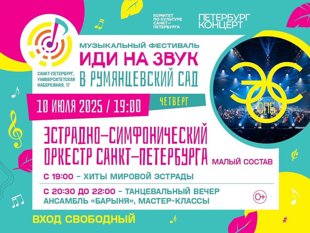 10 июля в 19:00 зрителей ждет незабываемая встреча с музыкантами Эстрадно-симфонического оркестра Санкт-Петербурга. Этот уникальный, созданный на базе «Петербург-концерта» коллектив, художественным руководителем и главным дирижером которого является Андрей Медведев, выступит малым составом и исполнит узнаваемые с первых нот романтические мировые хиты в оригинальных аранжировках.