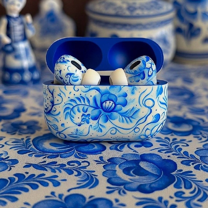 Погрузитесь в атмосферу русского традиционного искусства, которое восхищает своей изысканностью и утонченностью. Эти AirPods, оформленные в технике Гжель, несут в себе гармоничную красоту голубых оттенков и изящных узоров, словно перенося вас в мир сказочных узоров.